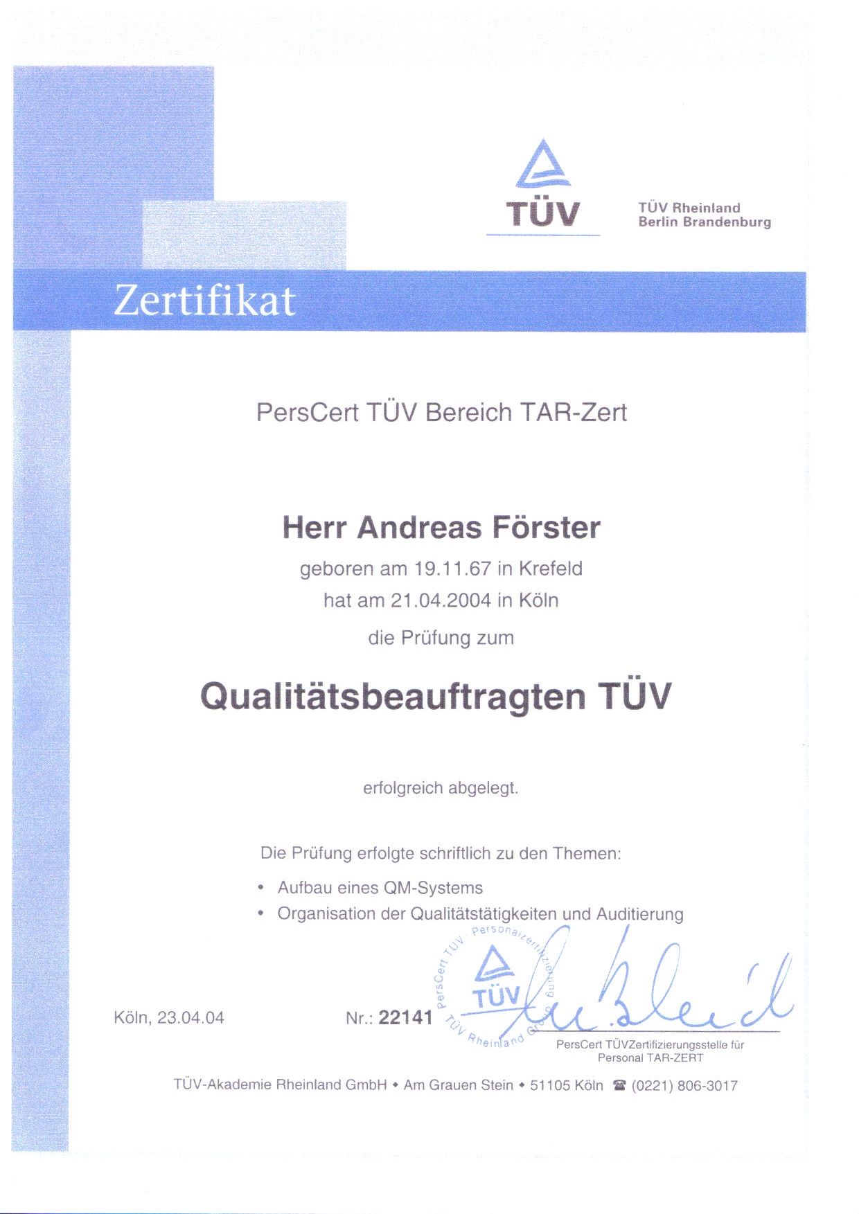 Andreas Paul Förster                      Kleikstrasse 78                       52134 Herzogenrath                    foerster@apfoerster-consulting.de                     Datenschutzerklärung